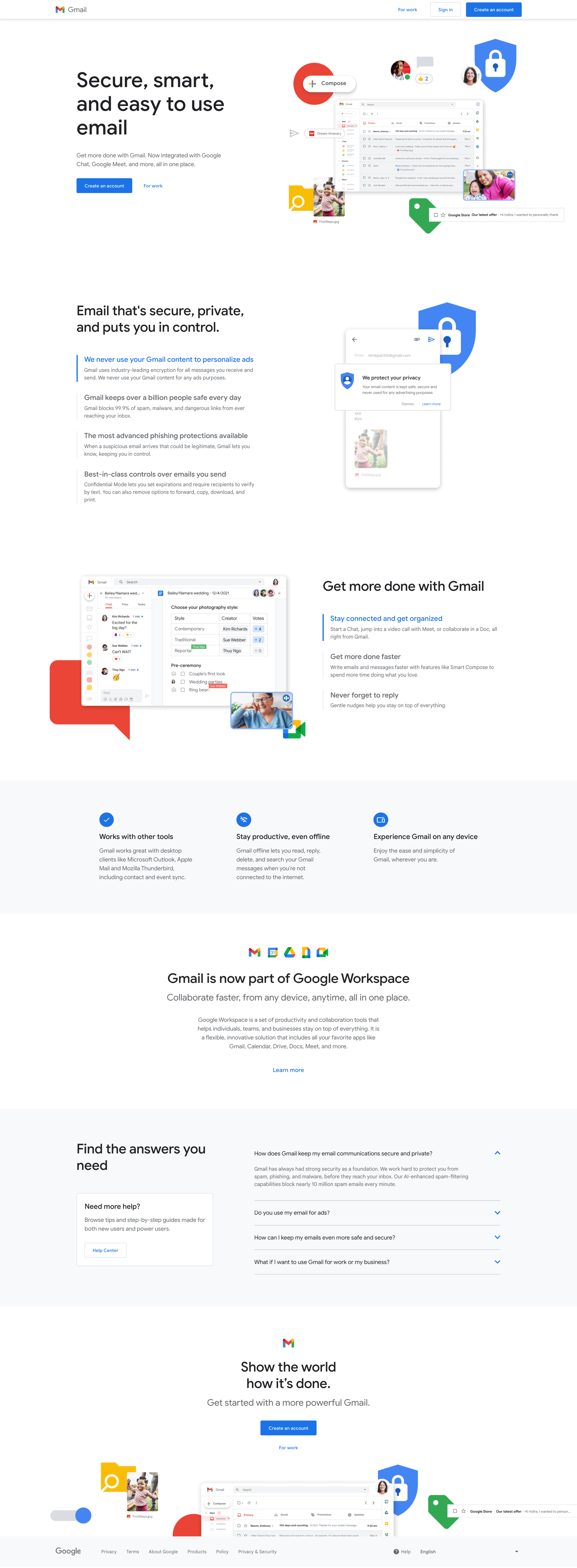 My PMM, my Web lead, and I wrote and touched every word on this page. Gmail is by far the most high-traffic site I’ve ever worked on. I’m not sure if I’m more proud of that or for hustling all the LGTMs. Given the amount of global traffic this page receives, perhaps I’ve done my part in preserving the Oxford Comma for at least this page’s lifespan.